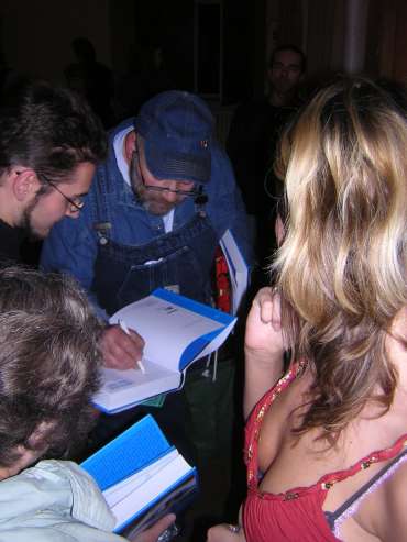 Podpisuju knihu Štěpánu Kučerovi, jednomu z autorů Antologie Divokého vína. Ale čí jsou ty krásné k…? Nějaké mladé básnířky…? Básnířko, pošlete svoje verše, samozřejmě je Divoké víno bude publikovat, o tom není sporu!